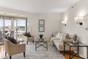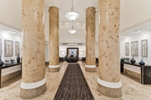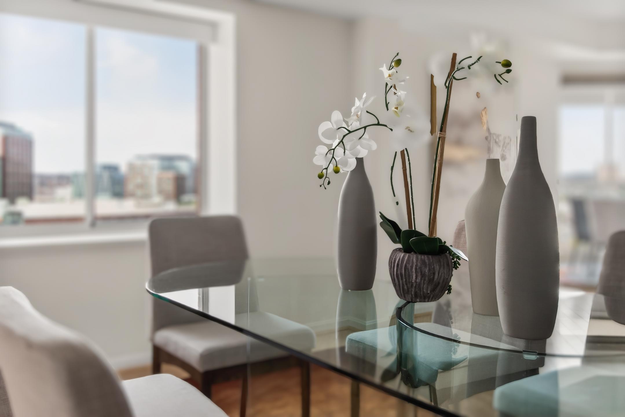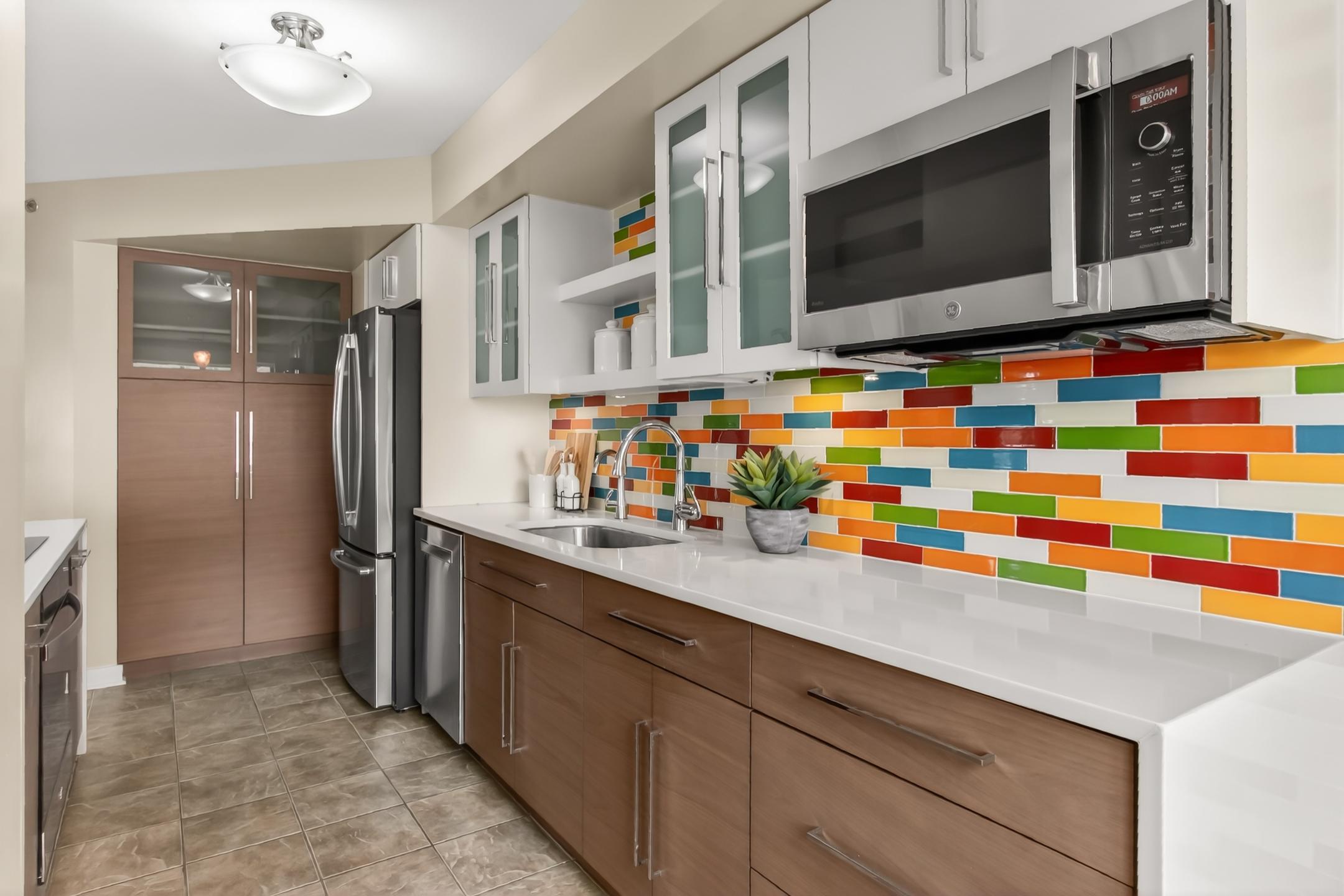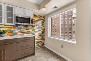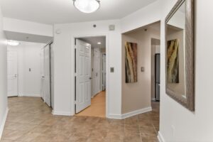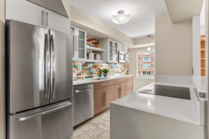 Completely renovated 3-bedroom, 2.5-bath corner residence with over 1,700 finished square feet of living space, filled with natural light and showcasing sweeping views of the George Washington Masonic National Memorial from nearly every room. This thoughtfully redesigned home features bamboo hardwood flooring, fresh 2024 interior paint, George Kovacs lighting, Murano glass accents, electric blinds, and expansive windows throughout. The open living and dining areas flow into a stunning glass-enclosed sunroom ideal for a home office, den, or informal dining. The reconfigured eat-in kitchen offers quartz waterfall countertops, added pantry storage, flat-top induction cooktop, Advantium microwave/convection oven, stainless steel appliances, and a fantastic view. A chic updated powder room rounds out the main living area. The spacious primary suite boasts a contemporary lighted ceiling fan, four closets with custom Elfa organizers including a walk-in closet and an updated 2024 ensuite bath with a dual sink vanity with Keystone counters, sleek lighted mirrors and fixtures, a vessel soaking tub, and frameless glass shower. Two additional bedrooms, one with a built-in deck and bookcases, one with a Murphy bed that conveys, share access to the renovated hall bath. An in-unit washer and dryer and generous storage space add convenience and complete the interior. The unit includes two deeded and assigned side-by-side garage parking spaces (#2-21 and #2-22) in a prime location and a deeded storage unit on the 4th floor. Located in the prestigious Carlyle Towers, residents enjoy two outdoor pools, an indoor infinity lap pool, hot tub, saunas, two fitness centers, clubhouse and party room, sports courts, shuffleboard, a putting green, 24-hour front desk and security, and a free weekday rush-hour shuttle to King Street Metro. The community is non-smoking and permits one pet per unit with no size or breed restrictions. Ideally situated just blocks from King Street Metro and Old Town Alexandria’s waterfront, this prime location offers easy access to boutiques, restaurants, cafes, the free trolley, Routes 1, 7, and 236, I-95, I-495, GW Parkway, Amazon HQ2, Del Ray, Shirlington, Pentagon City, Springfield, Jones Point Park, Mount Vernon Trail, and the Carlyle Dog Run Park.