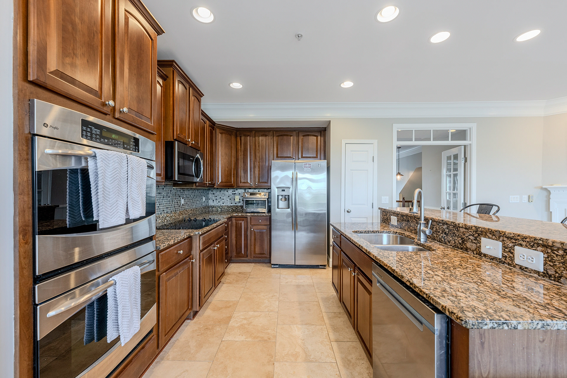 Spacious and beautifully updated upper-level “Picasso” model in Kirkpatrick Farms offering over 2,638 square feet of comfortable living space. The main level features a bright living and dining area in the front of the home and a huge kitchen spanning the entire rear with cherry cabinetry, granite countertops, breakfast bar island, stainless steel appliances including a double wall oven and cooktop, and plenty of space for a large table or a second living room area. Recent updates include new hardwood floors in many areas, a renovated powder room (2023), 16 SEER HVAC system (2024), new dishwasher and microwave (2025), new water heater (2020), washer and dryer (2020), and a roof (2023). The one-car garage includes a Tesla charger, and the home is equipped with a Google doorbell and rear driveway camera along with thousands in upgraded wiring for a home run system, Wi-Fi extenders, and additional tech features. The upper level features three large bedrooms, including a huge primary suite with an oversized walk-in closet, dual vanities, and a large shower. The secondary bedrooms are spacious, and the laundry room is a room with a door (as opposed to the laundry closets you often see!). Lighting has been enhanced throughout with recessed LED fixtures, creating a modern and bright feel. Kirkpatrick Farms offers a highly desirable community setting with pools, tennis courts, playgrounds, walking trails, and a clubhouse. Conveniently located near top-rated Loudoun County schools, major shopping and dining options, and commuter routes including Route 50, Loudoun County Parkway, and the Dulles Toll Road